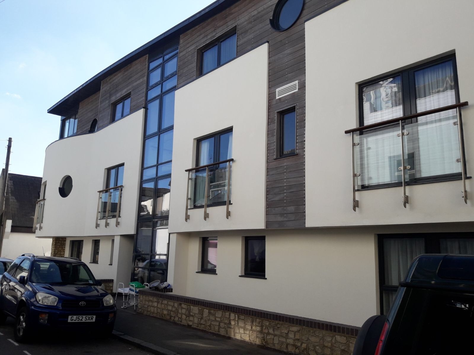 Our relationship with the metal finishes specialists, Rustoleum, meant that we could provide the client with a thorough and guaranteed specification. Extensive scraping back and treatment of salt deposits was undertaken, followed by an application of the specialist Rustoleum Galvanolium Primer. Two applications of the Rustoleum Alkathane top coat not only greatly improved the visual impact of the apartments but increased the lifespan of the buildings dramatically.