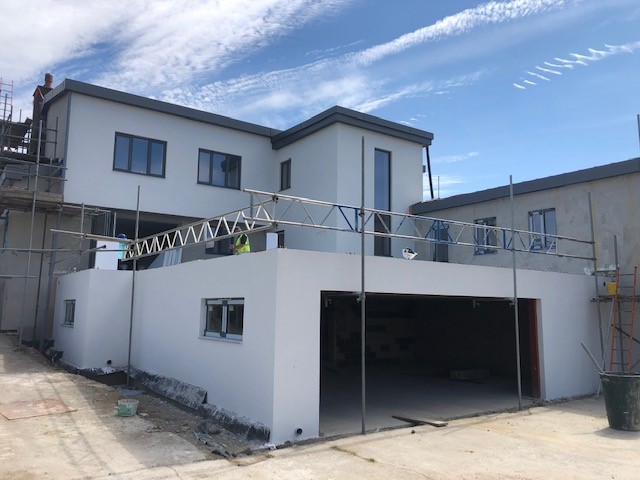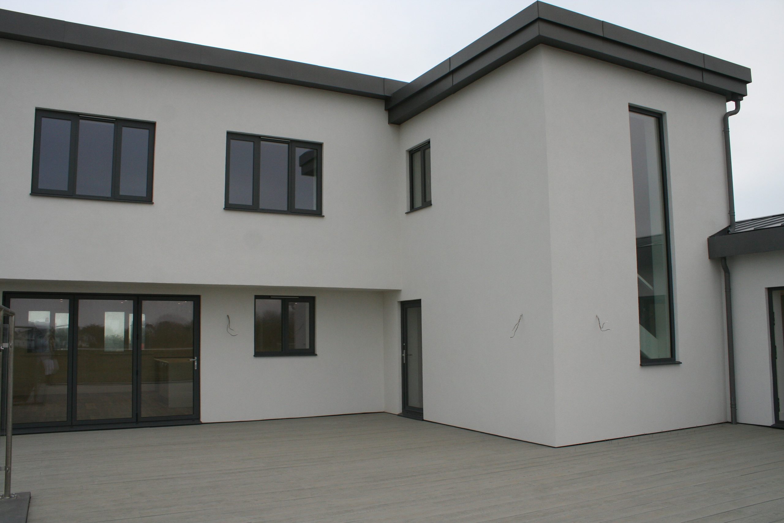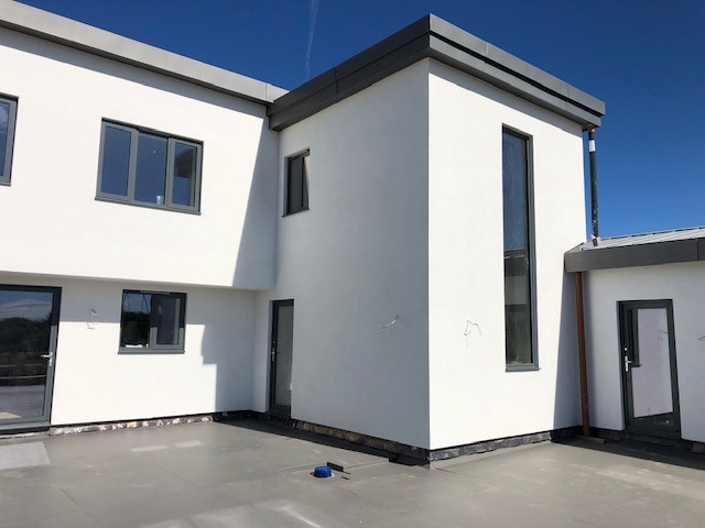 In re-modelling the property all-new aluminium marine grade windows and doors have been installed throughout, both new and existing walls have had mechanically fixed insulation and Sto render suitable for the marine environment. All existing roofs and roof structures have been stripped and replaced with new timber trusses, warm deck roof structure and standing seam zinc roof coverings. Internally the property has had underfloor heating installed to all three levels, completely re-plumbed, re-wired and ventilation systems installed throughout. Using our directly employed qualified tradesmen we have carried out extensive alterations and repairs to the structure of the building to suit the new design of the property and completely re-plastered and decorated the property along with all new woodwork and purpose-built joinery by our carpenters.